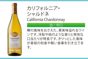 1876年にアメリカのナパ・ヴァレーで創業された「ベリンジャー・ヴィンヤーズ」が作るワイン。お醤油やお漬物をはじめとする「日本の味」とのマリアージュさせるべく、和食との相性を考えて味覚設計されたワインを作っています。その中から今回はシャルドネ主体の辛口・白ワインを購入しました。