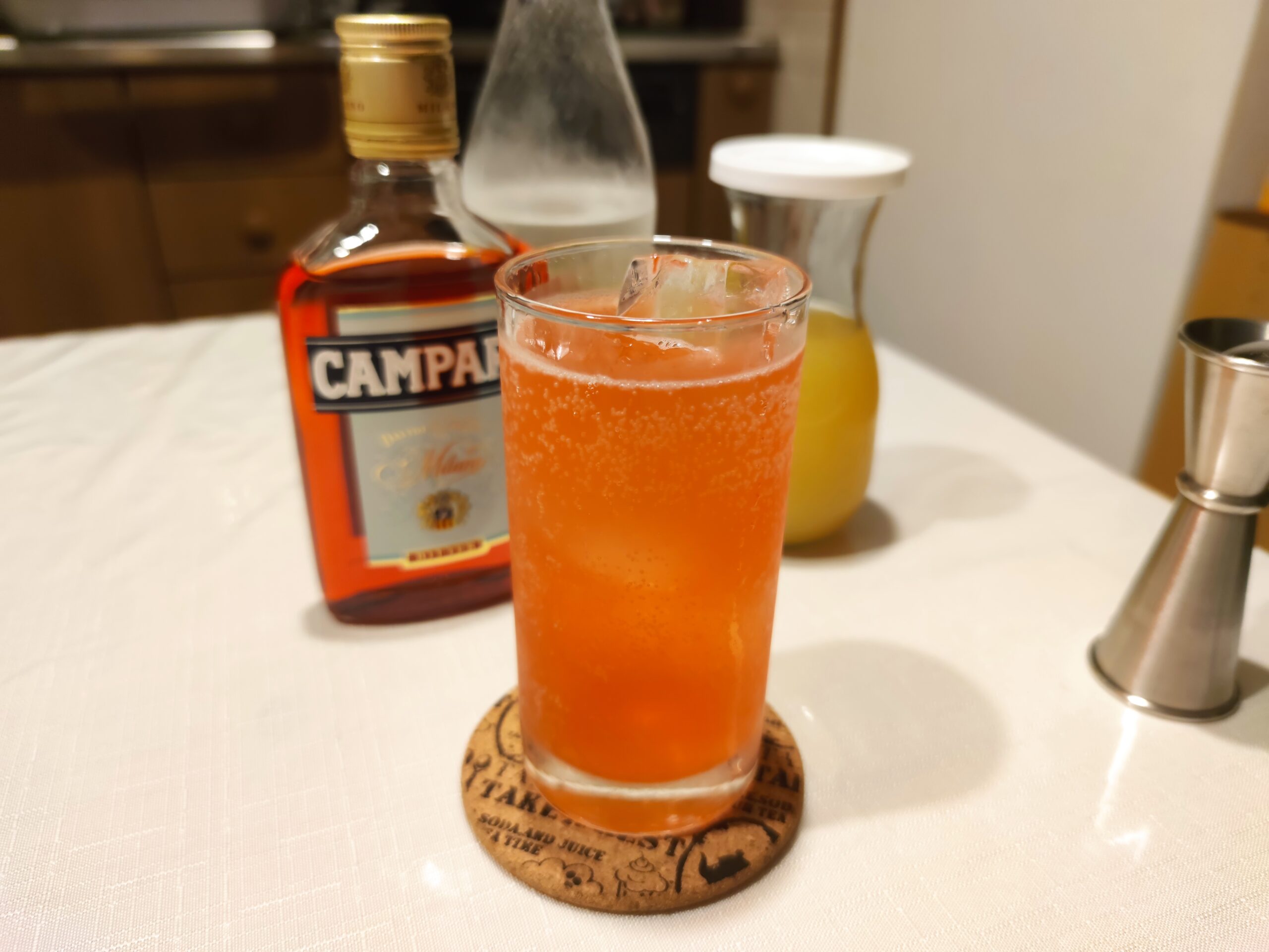 今回はロングドリンクのレシピで調整しました。ライチリキュールに「ディタ」、ブルーキュラソーはボルス、グレープフルーツジュースとトニックウォーターは昨日の残りを使用しました。ブルーキュラソーは通常レシピだと10mLなのですが、少々多い感じがしましたので、1tspに変更しています。