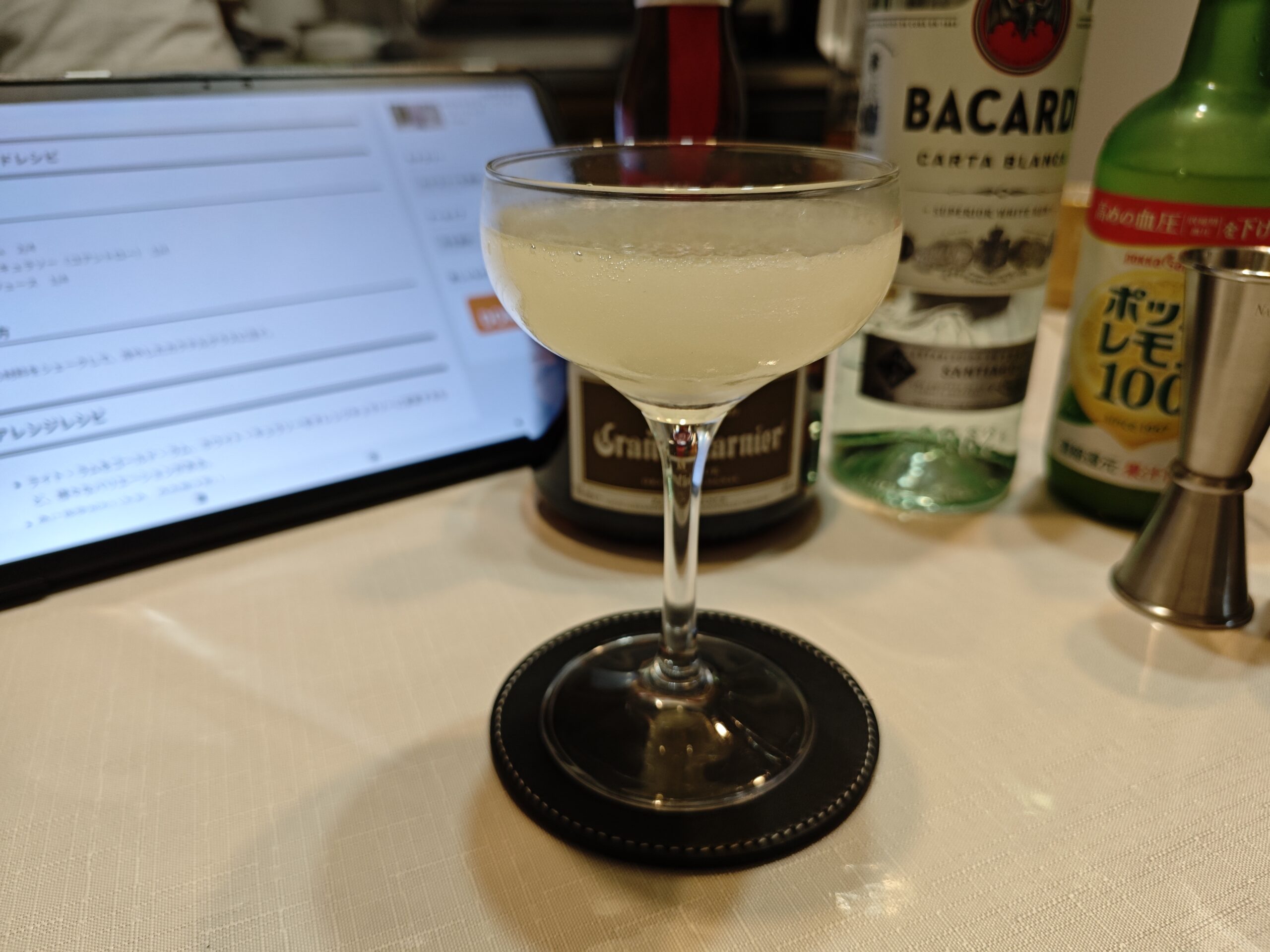 ラムベースのスタンダードカクテルですが、完成されたレシピなのに、変化を加える余地もあります。今回はホワイト・キュラソーのところをグラン・マルニエにしてみました。色味の指定がないので、若干オレンジ掛かってますが、これはこれでよい感じなのだと思います。味わいは甘めだが、思ったよりサワーとのこと。さわやかな一杯に仕上がったと思います。